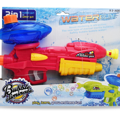 Pistola de agua 2 en 1. Pistola y burbujero. 27cm de largo. Incluye repuesto. 2114-JHD2000B